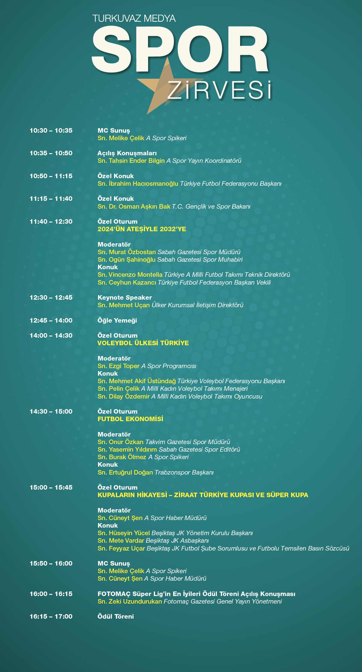 Sabah Gazetesi, Fotomaç Gazetesi ve A Spor güç birliğinde, Türkiye’de sporun birleştirici gücü ve çoğulcu yapısına destek verme hedefiyle gerçekleştirilen Turkuvaz Medya Spor Zirvesi ve Fotomaç Süper Lig’in En İyileri Ödül Töreni sporun ve sporcunun gündemini belirliyor…